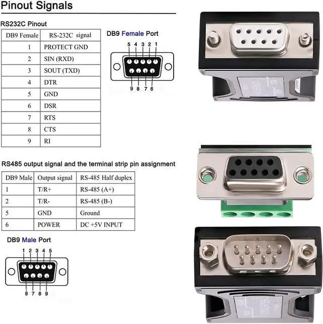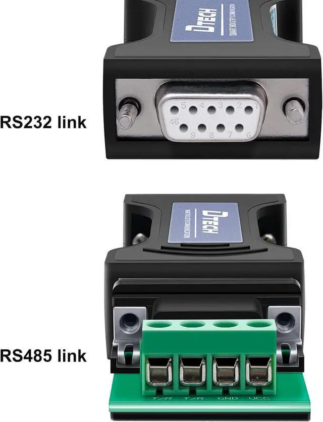 Mini RS 232 to 485 serial adapter enables the connections of multiple bus nodes and 32 devices can be joined in RS-485 network
