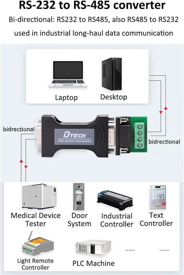 Commercial Grade Bi-Direction RS232 to RS485 Converter used in Industrial Long-haul Communication up to 4000ft (1200 meters)
