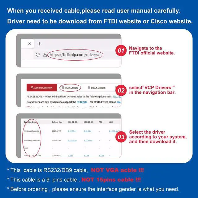 - This cable is RS232/DB9 cable,is NOT VGA cable!!!