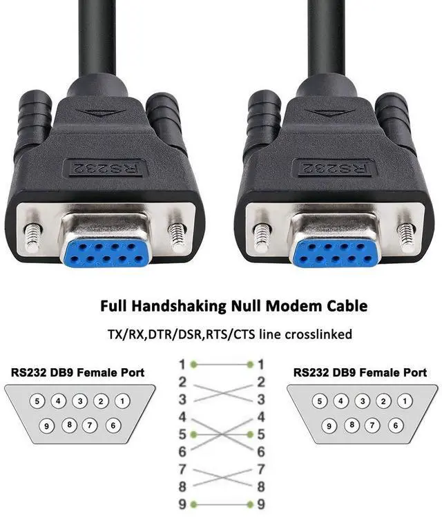 If your equipment require full wire null modem cable (full handshaking signal), take this 1.5 foot 9 pin serial null modem cable wherever you need it, it allows you to add your RS232 peripherals to an application or replace your old cross-linked cables.