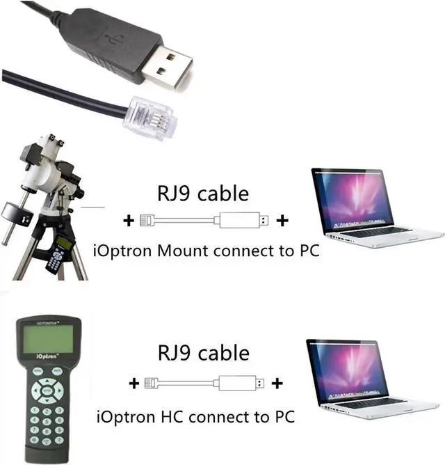 The cable is enough for connecting Computer/ASIAIR PRO/Raspberry Pi and iOptron HC (Go2Nova) /Mount with RJ9 port (4P4C), to update the firmware of the Hand Controller (HC 8407/8408), and steer the telescope by PC/Laptop to target stars. Control telescope by clicking on sky maps on computer monitor.