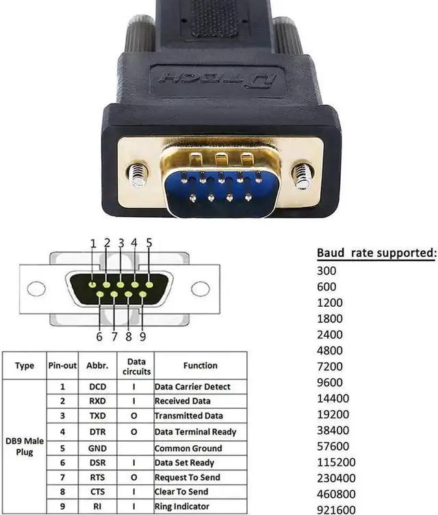 6ft serial USB RS232 converter data cord is shielded to protect your data from EMI/RFI noise, and is long enough to be useful but not so long as get in the way