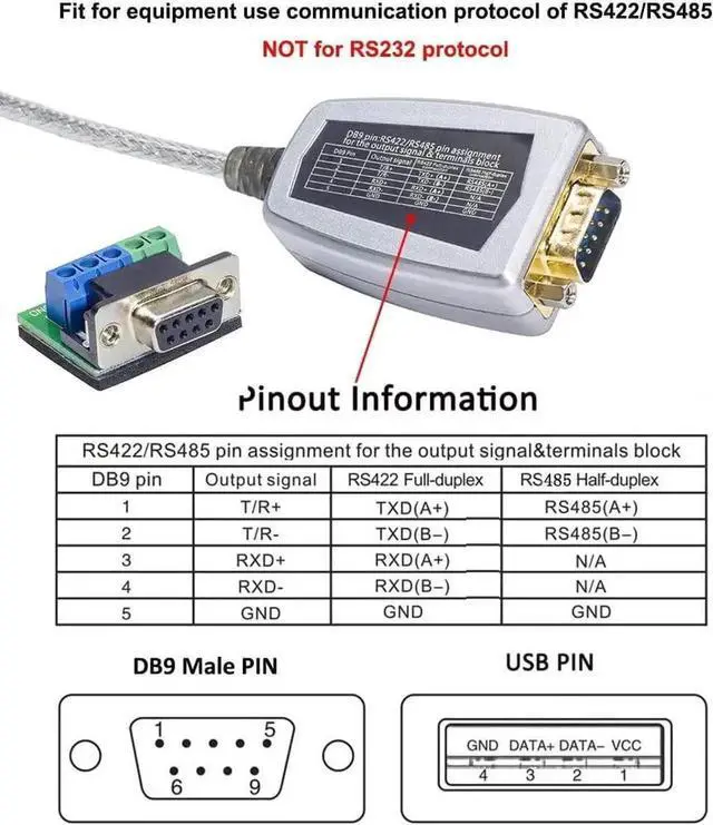 4ft USB serial RS-485 RS-422 adapter cable supports windows 11 10 8 7, Mac and more; plug-and-play, No power supply needed