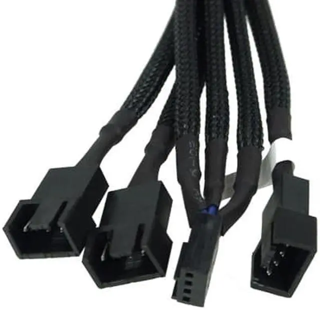 A Y-cable to connect 3x4-Pin PWM fans to one 4-Pin PWM connector. As fan control via the Mainboard with a PWM fan is much more affordable than a fan controller, this cable is perfect to give more flexibility. The extension cable is sleeved with a black mesh which additionally protects the cable and looks great! This further expands the lifespan of the cable. The ends towards the connectors are fixated with heatshrink for a clean finish. A white marking on one of the split cables shows from which cable the rpm signal is transmitted.