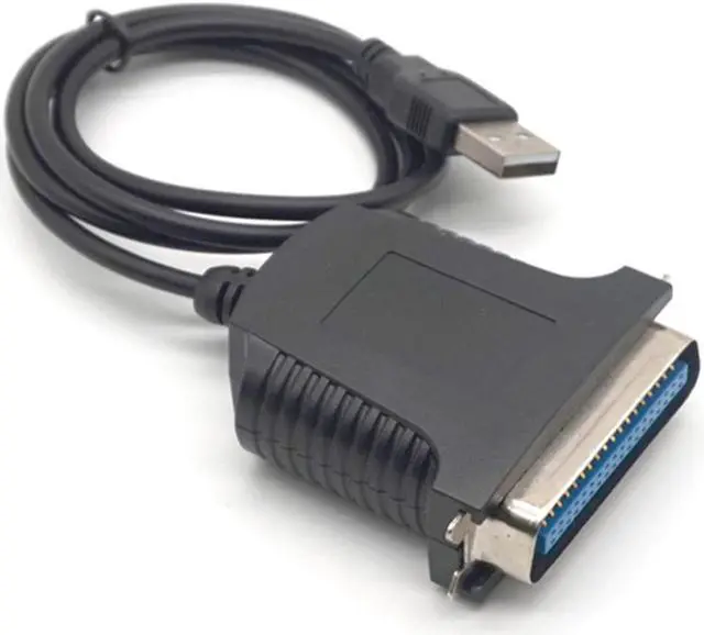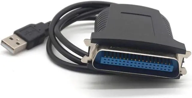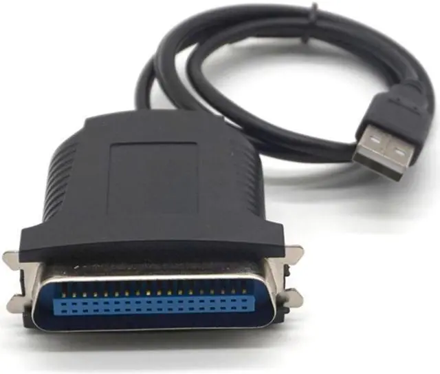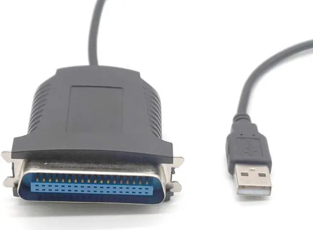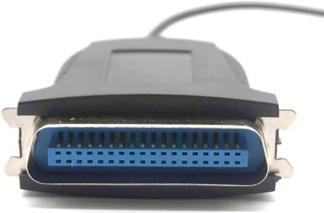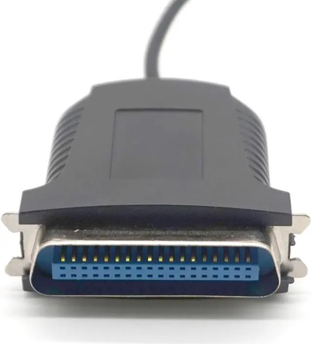 Converts a printer's 36-pin parallel port for use with a USB port.