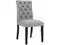 Bestow elegance with the Duchess Dining Chair. Chic and luxurious, Duchess features a stylish curvy form, richly tufted button back, dense foam padding, fine fabric upholstery, and wood legs topped with non-marking foot caps. Resonate grace and charm with a dining chair perfect for the modern home.