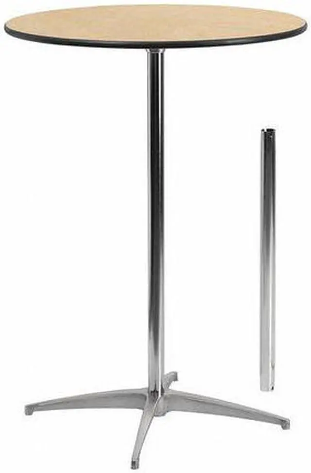 Expand the seating space at your next event or get your day started with a cup of coffee in the breakfast nook with this charming, versatile pub table. The 30" Round Wood Cocktail Table comes with two columns to enjoy as a bar table or standard table. The birchwood table top has four clear coats of polyurethane to ensure durability in hospitality environments, banquet halls and restaurants. Self-leveling floor glides adjust to uneven floors so dinnerware or decorative displays stay where they should. Add an extra long table cloth with an overlay, matching chair sash or bow to create an elegant atmosphere.