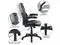 Flip-Up Arms: 24.75"W x 26.25"D x 42.25 - 46.25"H. Black LeatherSoft Upholstery with gray mesh inserts. Built-In Lumbar Support, Waterfall Seat Edge. Tilt Lock Mechanism rocks/tilts the chair and locks in an upright position. Tilt Tension Adjustment Knob adjusts the chair's backward tilt resistance. Fixed Width: 55.125 Inches, Fixed