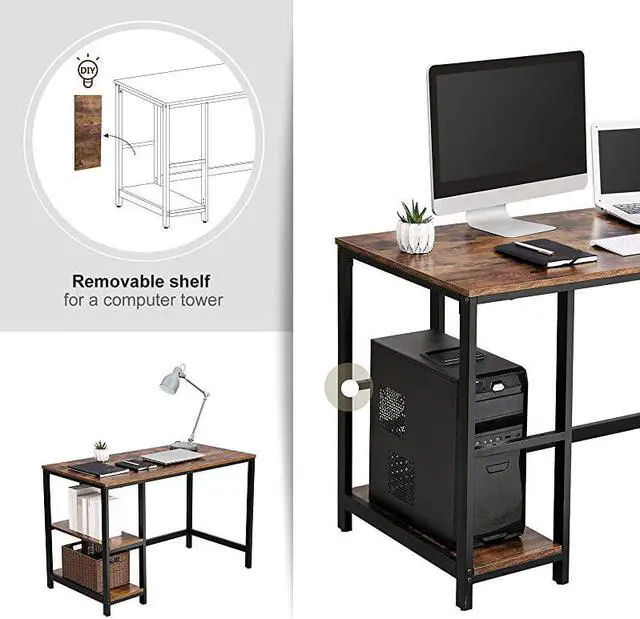 IN REACH: With a large table area and 2 storage shelves that can be installed on the left or the right, everything can be in reach; if you need the space for a large computer tower, feel free to remove the top shelf for some extra room***** *****STABLE