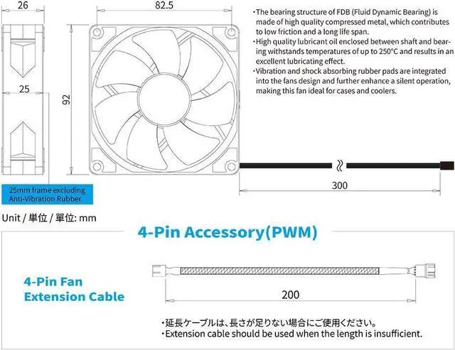 Fan dimension: 92x92x25mm, MTTF: 120,000hours, Connector: 4-Pin