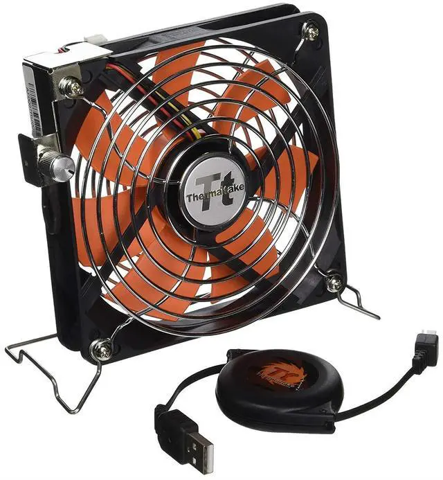 Application for Notebook and Desktop, Anything can connect to USB Power Convenient cooling solution for -InchMobile user VR knob : Adjust fan speed manually One-touch retractable USB power cable box Directly plug into USB port. Unnecessary additional power supply Size :12cm