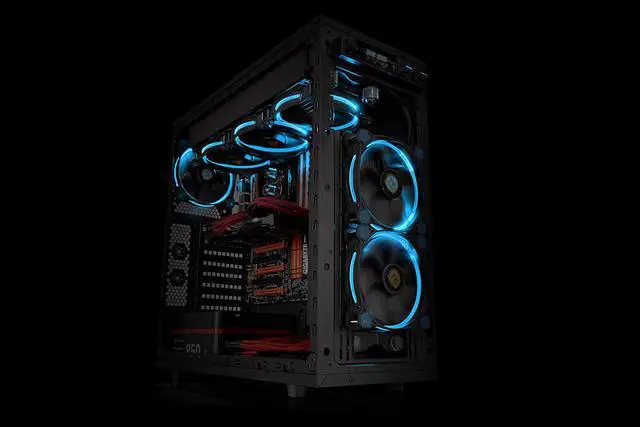 The patented LED Ring maintains color and brightness uniformity; the lighting effect is visible from all sides and angles. The four-colored LED ring (in blue, red, white, and green) adds style to the chassis.