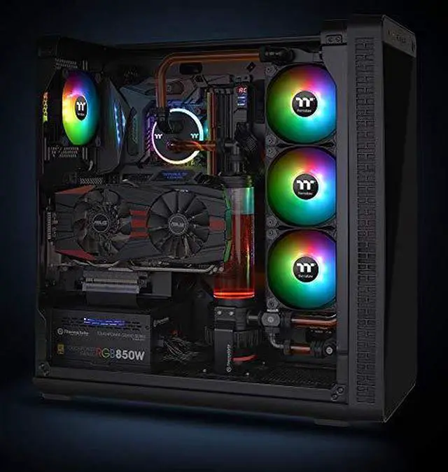 Thermaltake Pure 20 ARGB sync radiator fan TT Premium Edition features compression blades, hydraulic bearing, and a 16. 8 million colors LED Ring with 9 addressable LEDs that is ready to sync with 5V RGB Capable motherboards from Asus, Gigabyte, MSI and as rock. Users can easily switch RGB lighting effects using the ARGB controller that is included in the packet, or by ASUS AURA Sync, gigabyte RGB FUSION, MSI Mystic Light Sync and as rock polychrome software. Pure 20 ARGB sync radiator fan delivers 16. 8 million-color RGB illumination and unparalleled ventilation.