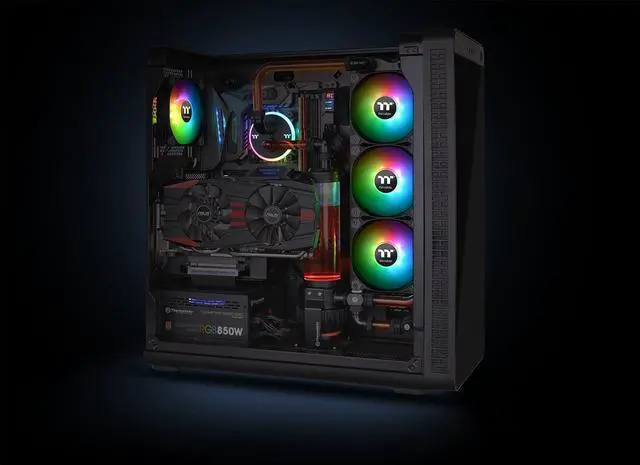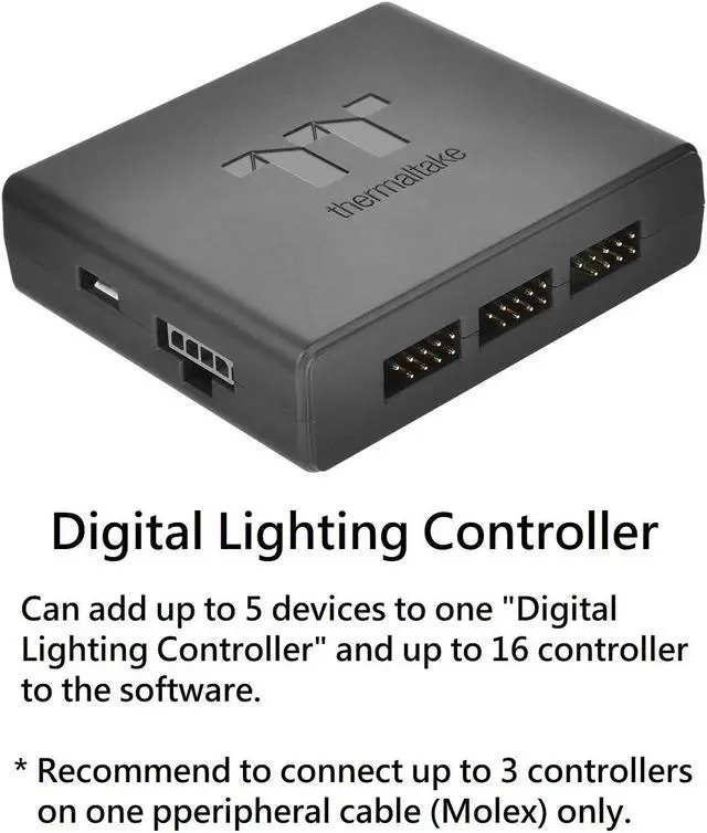 TT RGB PLUS Ecosystem is the intelligent lighting system for PCs that combines the most advanced addressable LED lighting with Thermaltake’s patented TT RGB PLUS Software. TT RGB PLUS ecosystem provides nearly unlimited possibilities for playing with colors, synchronizing lights to games, music, CPU temperatures or other TT RGB PLUS products, including case fans, CPU/VGA water blocks, AIO CPU coolers, PSUs, LED strips and peripherals. The patented software allows users to change the light modes, colors, speeds, brightness, fan speeds, and even supports AI voice control in iOS and Android devices.