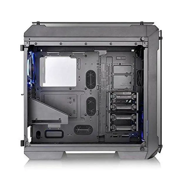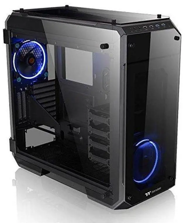 Details: Designed to expand the legacy of the View Series lineup the View 71 Tempered Glass Edition Full Tower Chassis features unrivaled cooling support and expandability surrounded in tempered glass for a one of a kind view. Swing open full window tempered glass panels for easy access with all panels properly spaced for optimal airflow. Preinstalled with 140mm Riing RGB fans Vertical GPU mount and 3-Way Radiator support for today's PC hardware demands the only limitation is your imagination.