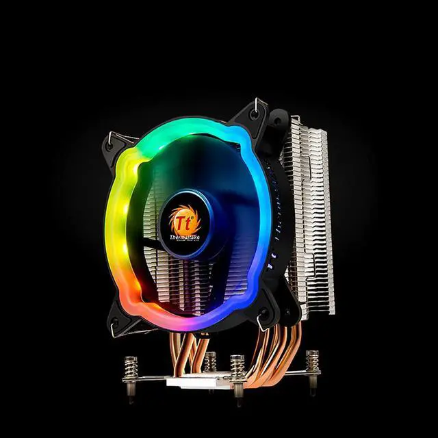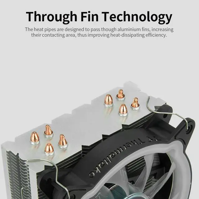 This RGB CPU Air Cooler is designed with 4 direct contact heatpipes, plus through fin technology, offering efficient heat dissipation. Besides, the rotating speed of the fan will change according to the temperature of the CPU.