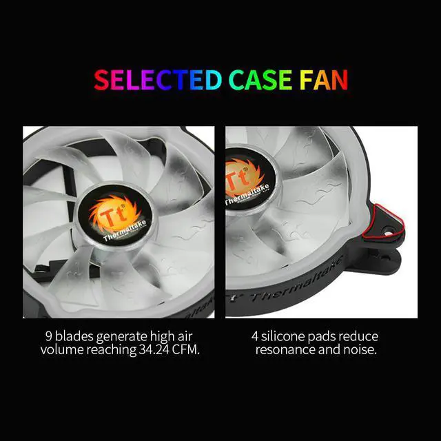 Feature: Wide Compatibility The controlling hub is compatible with 12V and 5V charging interface. And it also supports lighting controlling software of Asus, Gigabyte, MSI and other motherboards. Efficient Heat Dissipation 9 blades generate high air volume reaching 34.24 CFM. Quiet Operation With 4 silicone pads applying on the feet of fan, it is anti-vibration and reduces noise. Controlling Hub With it, you can sync lighting effect of 8 fans with hardware inside computer case, adjust the speed of lighting and change lighting modes. 20 Lighting Modes You can change the modes through the hub to fulfil your need.