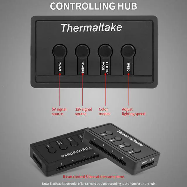 With it, you can sync lighting effect of 8 fans with hardware inside computer case, adjust the speed of lighting and change lighting modes.
