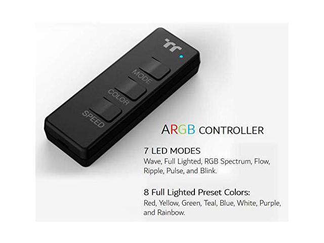 - Analog ARGB controller - low-profile controller included for users without RGB Cable motherboards Choose from 8 Preset colors (red yellow green teal blue White Purple and rainbow) 7 LED modes and off mode (wave full light RGB spectrum off flow ripple pulse and blink) and 4 LED speeds