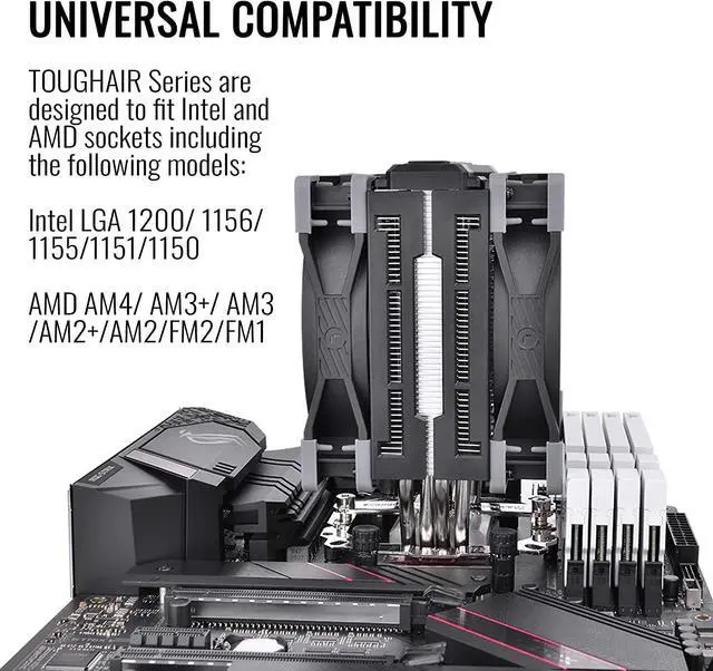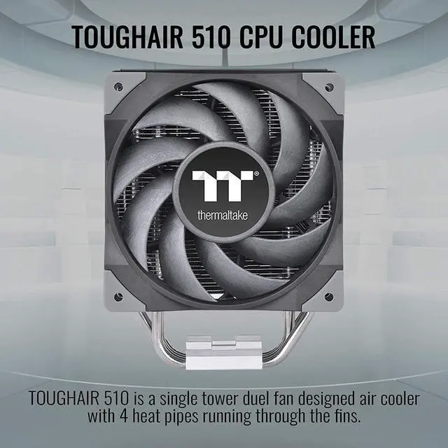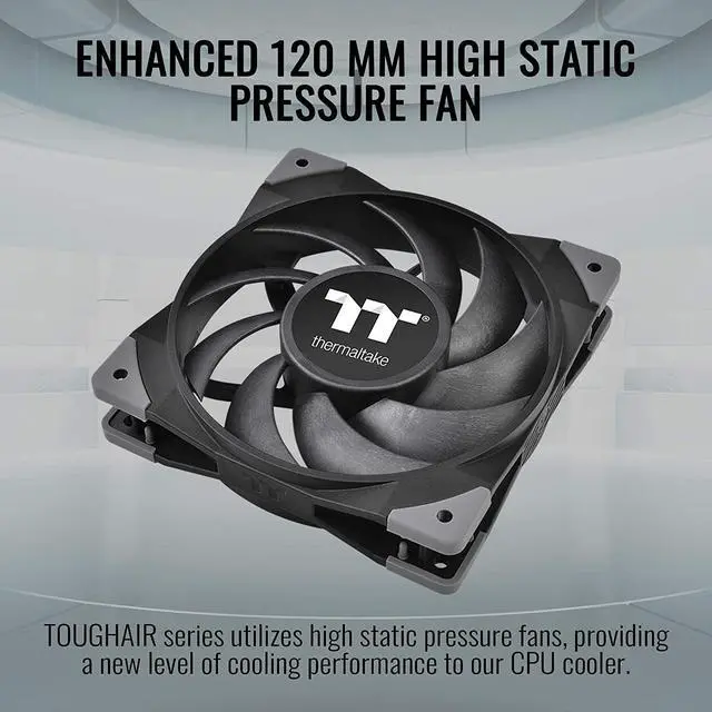 A single tower designed CPU cooler equipped with an optimized 120 mm high static pressure fan and newly designed heat sink. \u2022P/N: CL-P075-AL12BL-A \u2022COMPATIBILITY: Intel LGA 1200/1156/1155/1151/1150 AMD AM4/AM3+/AM3/AM2+/AM2/FM2/FM1 \u2022DIMENSIONS: 123.6 x 98.8 x 159.5 mm ( L x W x H) \u2022HEATSINK MATERIAL: Aluminum Fins Copper Heatpipes \u2022HEATPIPE: F6mm x 4 pcs \u2022FAN DIMENSION: 120 x 120 x 25 mm ( L x W x H) \u2022FAN QUANTITY: 2pcs \u2022FAN SPEED: PWM 500 ~ 2000 RPM \u2022RATED VOLTAGE: 12V \u2022START VOLTAGE: 6.0 V \u2022RATED CURRENT: 0.48 A \u2022POWER INPUT: 5.76 W (one fan ) \u2022AIR FLOW: 58.35 CFM (one fan ) \u2022AIR PRESSURE: 2.41 mm-H2O (one fan) \u2022ACOUSTICAL NOISE: 23.6 dBA \u2022LIFE TIME/FAN LIFE TIME: 40,000 hours \u2022PIN CONNECT: 2510 - 4Pin \u2022COOLING POWER: 180 W