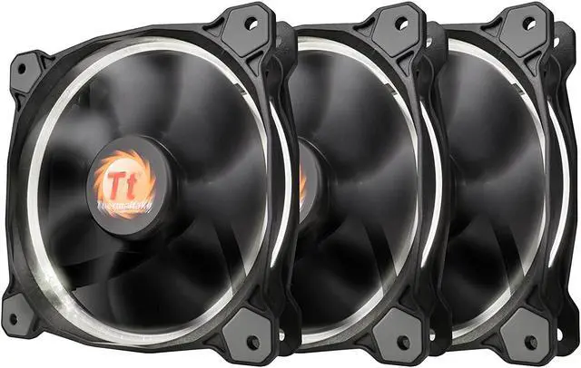 Thermaltake Riing 12 High Static Pressure Circular Ring White LED Case/Radiator Fan with Anti-Vibration Mounting System Triple Pack Cooling CL-F055-PL12WT-A