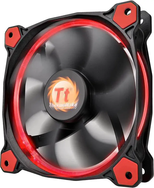 Ring 12 High Static Pressure LED Radiator Fan: Thermaltake has released the new Ring 12 LED Series, a 120mm fan fitted to enhance static pressure that produces impressive cooling performance with an optimized fan blade. In addition, an anti-vibration mounting system strengthens the stability during operation. The patented LED Ring maintains color and brightness uniformity; the lighting effect is visible from all sides and angles. The four-colored LED ring (in blue, red, white, and green) adds style to the chassis.