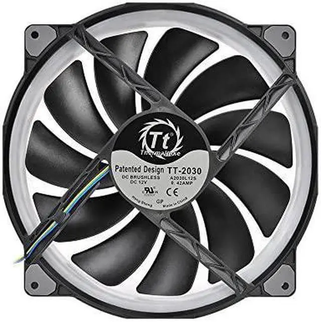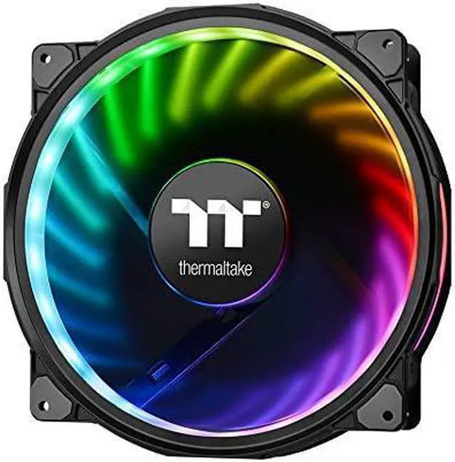 Riing Plus 20 LED RGB Case Fan TT Premium Edition (Single Fan Pack w/o Controller) Specially made for those seeking a 200mm PWM fan with superior airflow silent operation and customizable RGB lighting Thermaltake Riing Plus 20 RGB features compression blades hydraulic bearing and a patented 16 8 million colors LED ring with 12 addressable LEDs sets (24 addressable LEDs) Supporting Thermaltake s patented TT RGB PLUS Software and AI interactive voice control the Riing Plus 20 RGB lights up your system without sacrificing performance! *Riing Plus digital controller is not included *Only compatible with Riing Plus digital lighting controller TT RGB PLUS Ecosystem is the intelligent lighting system for PCs that combines the most advanced addressable LED lighting with Thermaltake s patented TT RGB PLUS Software TT RGB PLUS ecosystem provides nearly unlimited possibilities for playing with colors synchronizing lights to games music CPU temperatures or other TT RGB PLUS products including case fans CPU/VGA waterblocks AIO CPU coolers PSUs LED strips and peripherals The patented software allows users to change the light modes colors speeds brightness fan speeds and even supports AI voice control in iOS and Andriod devices P/N CL-F070-PL20SW-A (Fan x1) Fan Dimension 200 x 200 x 30 mm Interface USB 2 0 connectors (9 Pin) System Compatibility Windows 7 / 8 / 8 1 / 10 Fan Started Voltage 9 0 V Fan Rated Voltage 12 V & 5V Rated Current Fan 0 28 A (one fan) Power Input 12V 3 36 W 5V 4 25 W (Fan*1) Fan Speed 500 1000 R P M Max Air Pressure 1 68 mm-H2O Max Air Flow 117 96 CFM Noise 29 2 dB-A Bearing Type Hydraulic Bearing Life Expectation 40 000 hrs 25? Weight 343 g