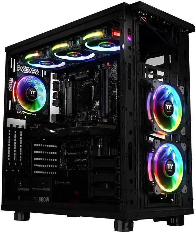 Thermaltake combines the patented gorgeous LED light with cutting-edge technology to deliver a brand new experience of using PC cooling, the Thermaltake Riing Plus 14 LED RGB Radiator Fan TT Premium Edition. A 140mm high-static pressure fan with a patented 16.8 million colours LED ring and 12 controllable single LEDs, the Riing Plus 14 RGB features compression blades, hydraulic bearing and a digital fan controller, and can be controlled by the patented Riing Plus RGB Software. Cool your system with high performance Thermaltake Riing Plus 14 RGB Fans.
