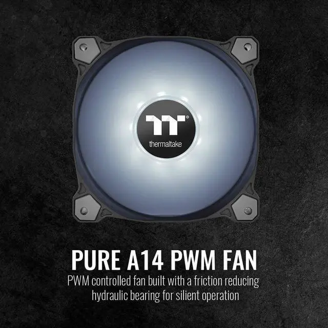 Pure A14 PWM controlled fans come with 4 color options including red, blue, green and white. Designed for radiator cooling, the Pure A14 LED fans incorporate 9 LEDs, long life hydraulic bearings for silent operation and anti-vibration dampening foam which minimizes vibration and sound.