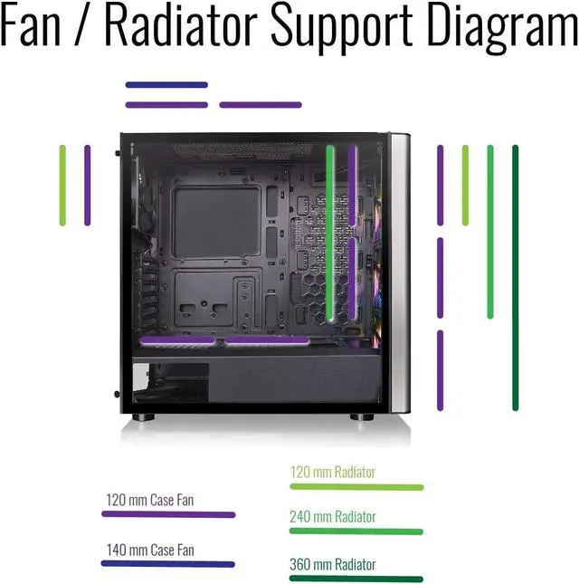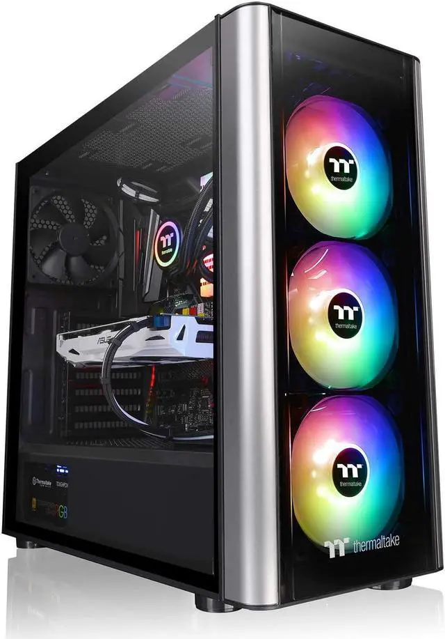 Thermaltake Level 20 MT ARGB is the premium mid tower synchronized with motherboard in the level 20 family. Level 20 MT ARGB features enlarged side panel window, ATX motherboard support and a power cover. The Level 20 MT ARGB comes preinstalled with three 120mm 5V ARGB LED front fans and one 120mm rear fan. The front fans are addressable to deliver 16.8 million-color RGB illumination and unparalleled ventilation. This model comes ready to sync with RGB capable motherboards from ASUS, Gigabyte, MSI and ASRock. The Level 20 MT ARGB takes our latest case innovations and wraps them in an ultra-modern style that\u2019s utterly unique in the case market today. Stand out from the crowd with the Level 20. \u2022 P/N: CA-1M7-00M1WN-00 \u2022 Case Type: Mid Tower \u2022 Dimension (H x W x D): 455 x 204 x 471mm (17.9 x 8.0 x 18.54 inch \u2022 Net Weight: 6.75 kg / 14.88 lb \u2022 Side Panel: 4mm Tempered Glass x 2 (Left & Front) \u2022 Color Exterior & Interior: Black \u2022 Material: SPCC \u2022 Cooling System: \u2022 Front (Intake): 120 x 120 x 25mm Addressable RGB fan (1000rpm, 27.2 dBA) x 3 \u2022 Rear (exhaust): 120 x 120 x 25 mm fan (1000rpm, 26 dBA) x 1 \u2022 Drive Bays: \u2022 Accessible: 1 x 2.5\u2019\u2019(HDD Bracket); 2 x 2.5\u201d \u2022 Hidden : 2 x 3.5\u2019\u2019 or 2.5\u201d(HDD Cage); 1 x 2.5\u201d(HDD Bracket) \u2022 Expansion Slots: 7 \u2022 Motherboards: 6.7\u201d x 6.7\u201d (Mini ITX), 9.6\u201d x 9.6\u201d (Micro ATX), 12\u201d x 9.6\u201d (ATX) \u2022 I/O Ports: USB 3.0 x 2, HD Audio x 1, RGB Switch x 1 \u2022 Fan Support: \u2022 Front: 3 x 120mm \u2022 Top: 2 x 120mm, 1 x 140mm \u2022 Rear: 1 x 120mm \u2022 Right Side (In front of M/B Tray): 2 x 120mm \u2022 Bottom (On the power cover): 2 x 120mm \u2022 Radiator Support: \u2022 Front: 1 x 360mm \u2022 Rear: 1 x 120mm \u2022 Right Side(In front of M/B Tray): 1 x 240mm \u2022 Clearance: \u2022 CPU cooler height limitation: 170mm \u2022 PSD length limitation: 170mm \u2022 VGA length limitation: 260mm (With radiator on the right side), 366mm (Without radiator on the right side).