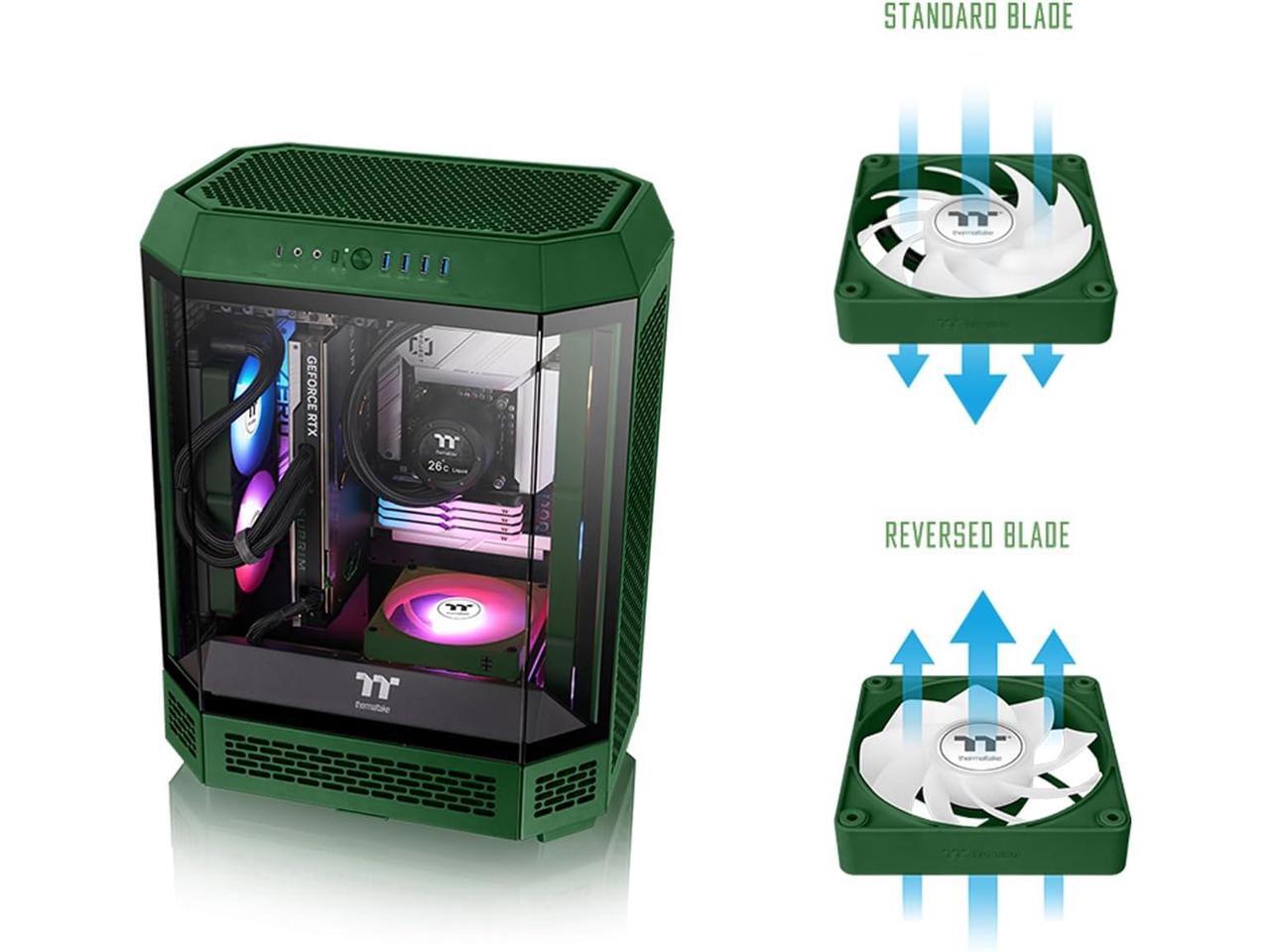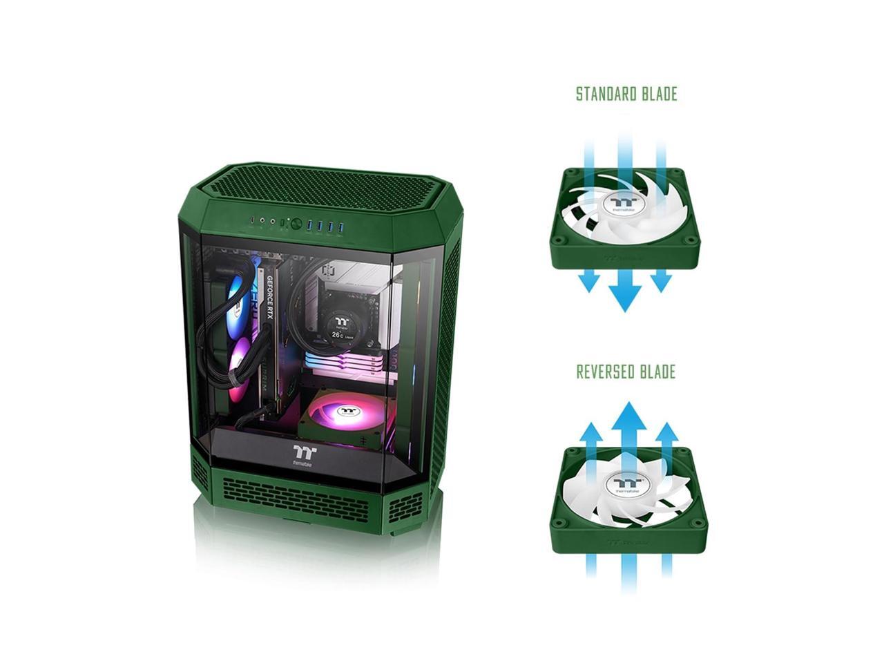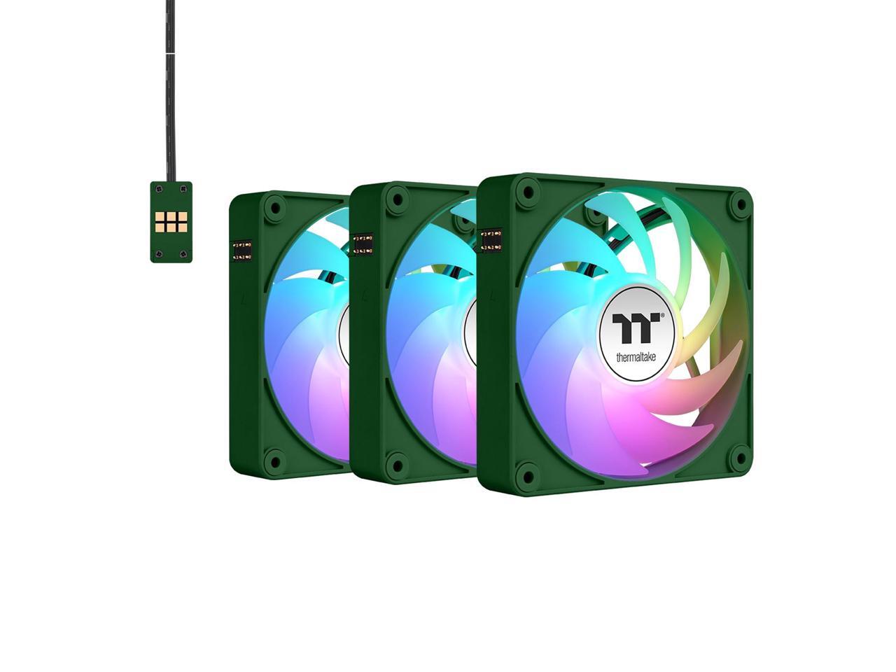 Thermaltake CT140 EX Reverse ARGB Sync PC Cooling Fan 3 Pack, 500~1800 RPM, 5V Mobo Sync, 16.8 Million Colors 9 LEDs, MagForce 2.0 Connectors, Hydraulic Bearing, Racing Green, CL-F230-PL14RG-A