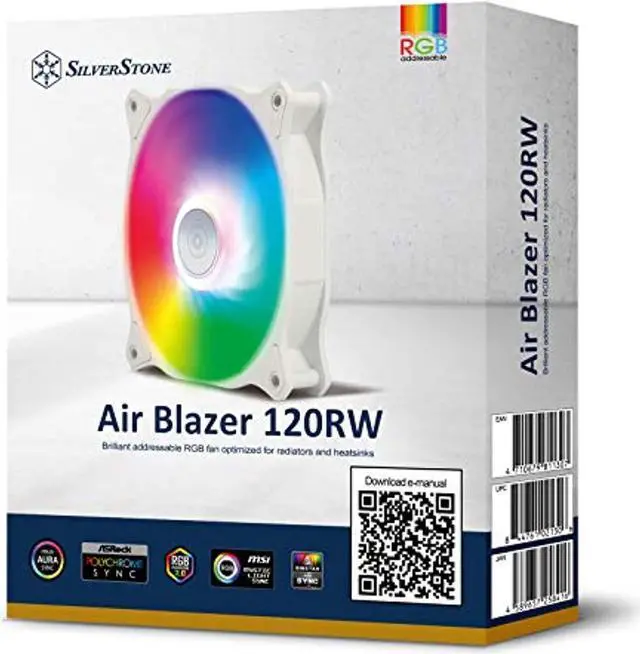 silverstone technology air blazer 120rw, pwm, argb, 120mm, white frame, translucent fan blades, hydro bearing, sst-ab120rw-argb