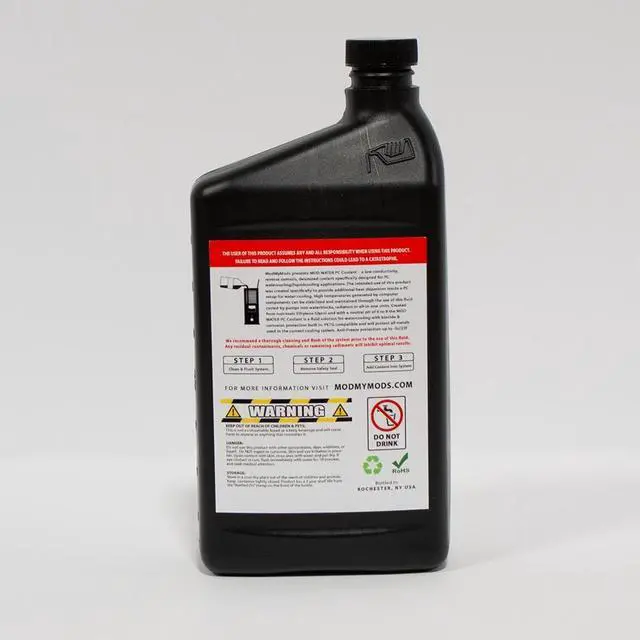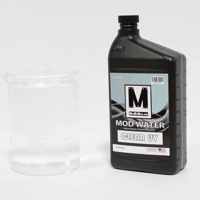 Water – PC Coolant is exactly what its name suggests, a reverse osmosis purified, de-Ionized, low conductivity, Non-Toxic Ethylene Glycol coolant.