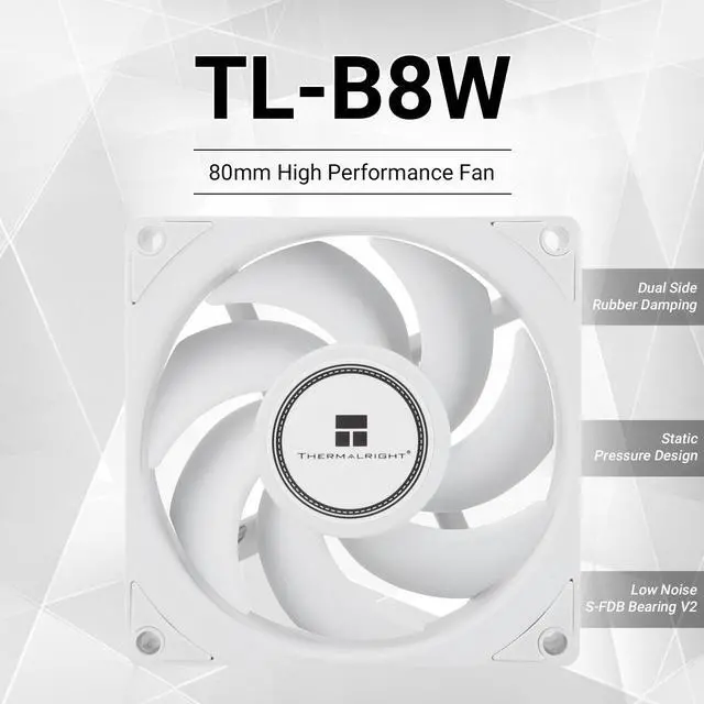 TL-B8W case fan×1, Long screws x 4, Nuts x 4, Shock absorbers x 8, Manualx 1, Self-tapping Screws x 4.