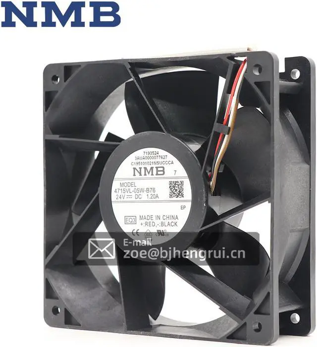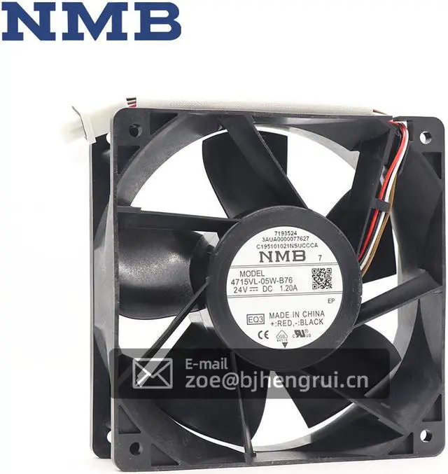 Type :4715VL-05W-B76 Brand:NMB-MAT Nominal voltage :DC 24V Valid for approval / standard :CE Current 1.20A Size:120*120*38mm Application: ABB ACS580/ 880 inverter fan