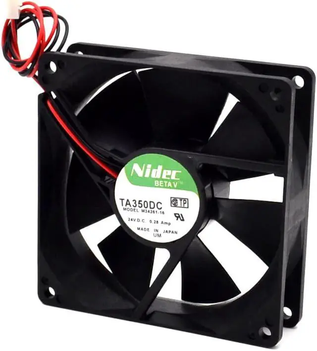 Model: TA350DC M34261-16Dimension: 92x92x25mmRated voltage: DC24VInput power: 0.28ABearing type: double ballConnection mode: Red Black two-wireInterfaces: Board 2-wireCord length: 10CM right and left