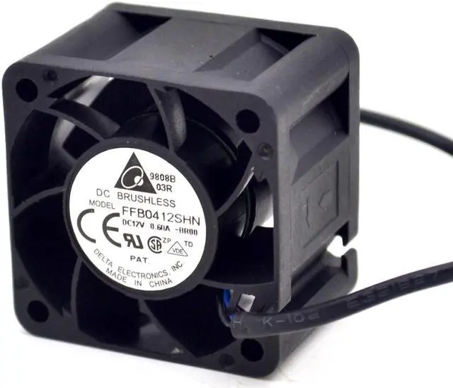 [ Fan Model ]: FFB0412SHN[ Dimensions ]: 40 × 40 × 28mm[ Rated voltage ]: DC12V[ Voltage Range ]: DC7.0V-13.6V[ Input Power ]: 0.6 A[ Rated speed ]: 8700 r.p.m[ Temperature Range ]: -10 .. 70 ° C[ Life expectancy ]: 25 ° C when the life expectancy of 50,000 hours L10[ Bearings] : Maintenance- double ball bearing[ Rotation] : air discharged from the stent , in the face of the rotor counterclockwise rotation[ Maximum air volume ] : 43CFM[ Motor Protection ] : overload , wrong level protection and stall protection locks flow[ Minimum pressure ]: 110 Pa[ Noise index ]: 40 dB (A)[ Material Material ] : Glass fiber reinced plastic , PBT housing , PA blade[ Function Description ] : E external rotor DC fans, complete electronic commutation componentsThree -line stall warning3-wire PWM