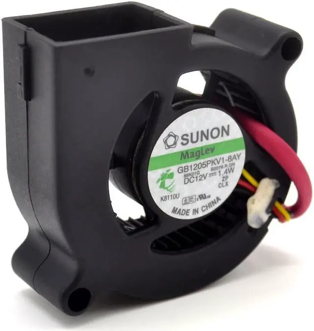 Specification: 50 * 50 * 20 mmModel: GB1205PKV1-8 ayVoltage: DC12VPower: 1.4 WCurrent: 0.08 A very quiet A centrifugal fanAir volume: 4.8 CFMnoise: 20 dba (fan)Speed: 4400 RPMVoltage range: 5 V - 13.8 Vtemperature: - 10 ° C + 70 ° CThe sustainable running time 100000 hoursScrew holes diagonal 5.8 cm in diameter, (fan size 5 cm thickness 2 cm)