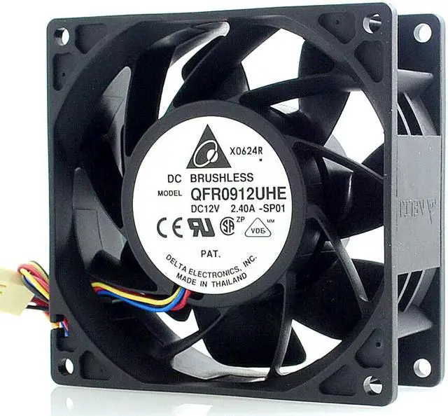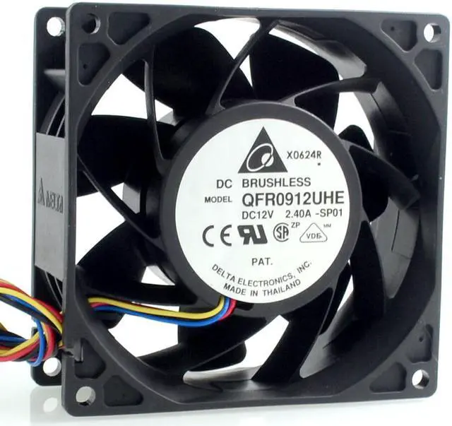 Fan parameters :Model : QFR0912UHEDimensions : 92 * 92 * 38mmVoltage : DC12VCurrent : 2.4A ( actual 1.6A)Power : 19.2WSpeed : 8300prmWind : 131cfmPressure :365.2 PaNoise : 62dbBearings : BallWeight:195.04g