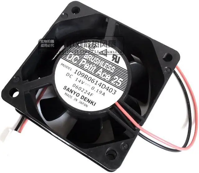 Model: 109R0614D403Size: 60 * 60 * 25mmVoltage: DC14VCurrent: 0.19APower: 6.32WSpeed: 5600 RPM