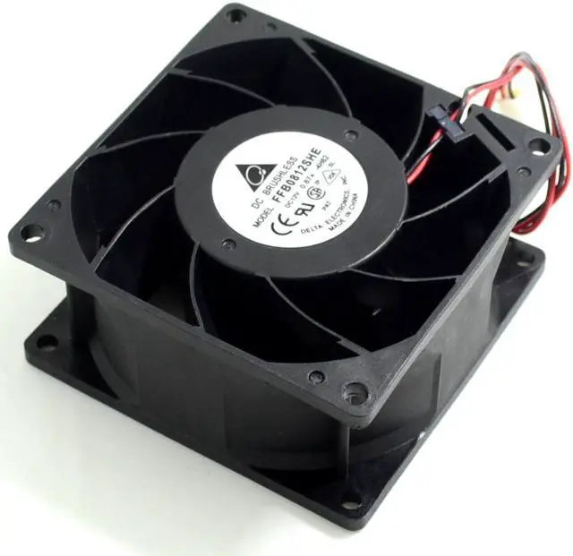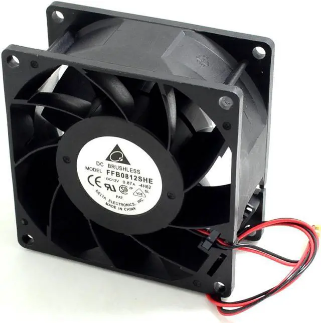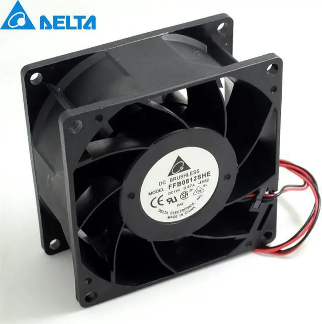 :deltaModel:FFB0812SHESize:80 * 80 * 38mmBearings :Double -precision ball bearingStandard voltage:12VCurrent:0.87ASpeed:4900RPMAir volume :68.5CFMWorking life:80,000 hoursFan connector :Motherboard three needle two lines 3P headAdditional featuresDoes not support gunFeatureMaintenance- magnetic bearings , long life, With sufficient cooling air volume and pressure .ApplicableChassis cooling , CPU cooler, the transmation of the power supply fan , water cooling auxiliary , switching power supply cooling, high reliability server application places.