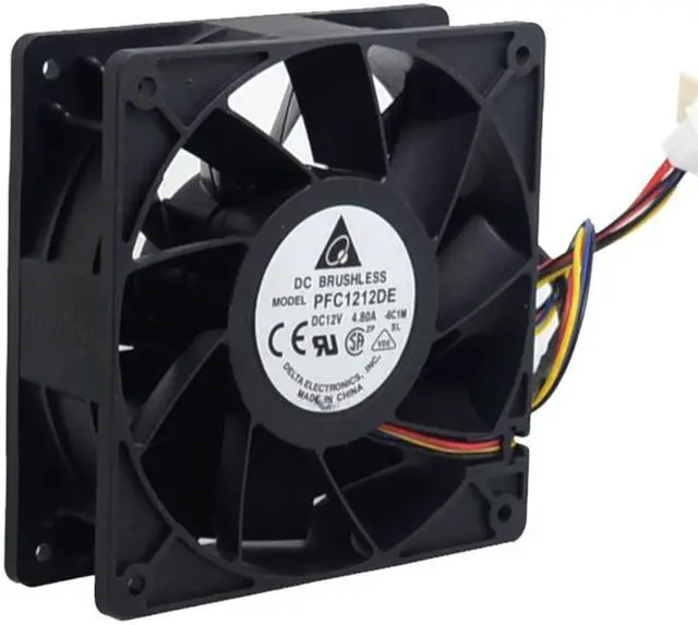 :Delta MODEL:PFC1212DESize: 120x120x38MMVoltage: DC12VCurrent: nominal 4.8A (12V current rating 2.98A, Delta fan deficiency is serious, understand stock friends all know, 12038 fan could reach such a high current is this, there is no other comparable to that of his. )Air volume: 252.85CFM (7.16m3/min)Air pressure: 1.412 in H2O (351.7 Pa)Weight: 0.351kgNoise: 66.5 dB (a)Power: 57.6WSpeed control: support motherboard PWM speed controlSpeed: supportInterfaces: Board 4P+ 4D dual power supply connectorCord length: 35cmRpm: 12V under 5500 RPMFan frame: injection molding, glass fiber +VO PBT+30% grade flame retardant;Blades: injection molding, glass fiber +VO PBT+30% grade flame retardant;Fan rotation direction: from the fan blade direction to counterclockwise;Operating temperature:-10 c to + 70 degrees Celsius;Storage temperature:-40 degrees c to + 70 degrees Celsius;Bearings: high-precision ball bearings;Power range: rated power supply plus or minus 15%;Insulation resistance: more than 500 mohm;Withstanding voltage: eign exchange leakage current 0.5mA 500V/1 minutes;Operating life time: when the ambient temperature is 25 degree 80,000 hours.Motherboard PWM speed control cases, adjustment to the 10% following the speed of 1050 rpm, 10%~100% adjust the fan on a level increase of 405 per turn, due to the boards current limiting, so not up to 5500 RPM.Connected directly to the power supply 12V plus or minus 2-pole power, can reach maximum speed.Note: the fan when you very, very violent test, please pay attention to safety, don't let the blade cut fingers, fan speed when turning 11 blades just like 11 sharp cutter the same merciless cut the wind, if the fingers into the cutting area, and ruthlessly cut down ... When the time comes.Strongly recommended use with safety nets.Launch our exclusive support up to 5 a of current Governor can be used with fanHigh quality 12V DC current cooling fan speed Max 5A