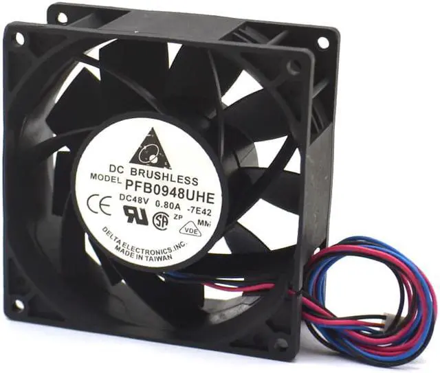 beand:deltaModel: PFB0948UHESize: 90*90*38mmVoltage: 48VCurrent: 0.8AThe actual current: 0.6APower: 28.8WWind: 7000RPMAir volume: 153.52CFMAir pressure:1.449inH2ONoise: 64dbaWeight: 250G