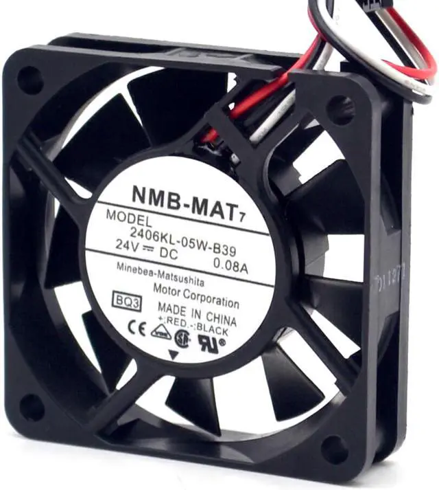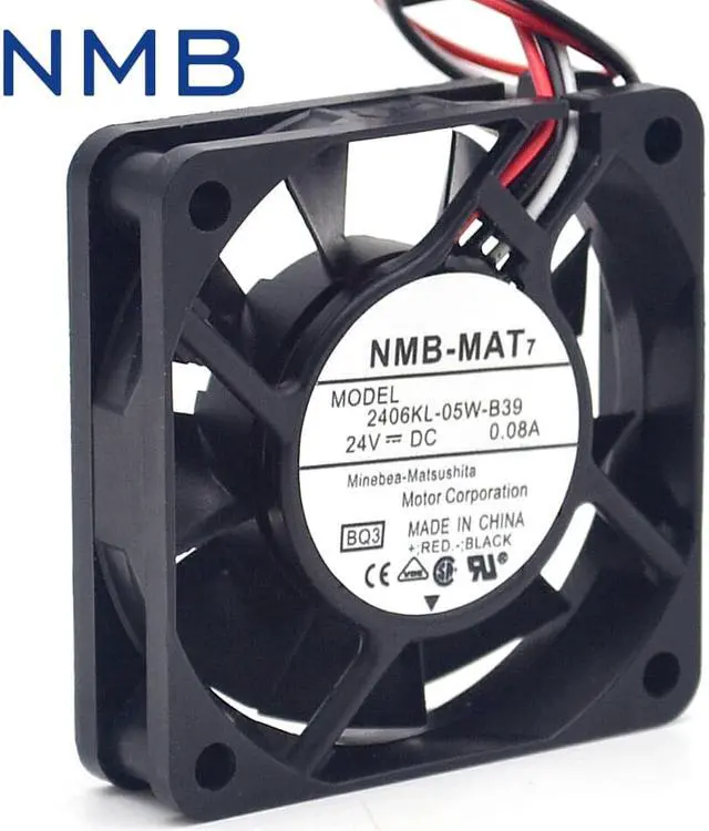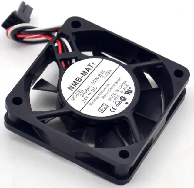 :NMB-MATModel: 2406KL-05W-B39Bearing: Double Ball (2 Ball Bearing with Special Designed IC Inside)size:60* 60 * 15mm (side length 6cm, thickness 1.5cm)Mean time between failures (MTTF): 180000 hoursRated voltage: 24VOperating voltage range: 10-13.8VCurrent: 0.08ARotating speed:4100RPMAir volume: 18.3CFMNet weight: 45 gramsNoise: 29DB:NMB-MAT