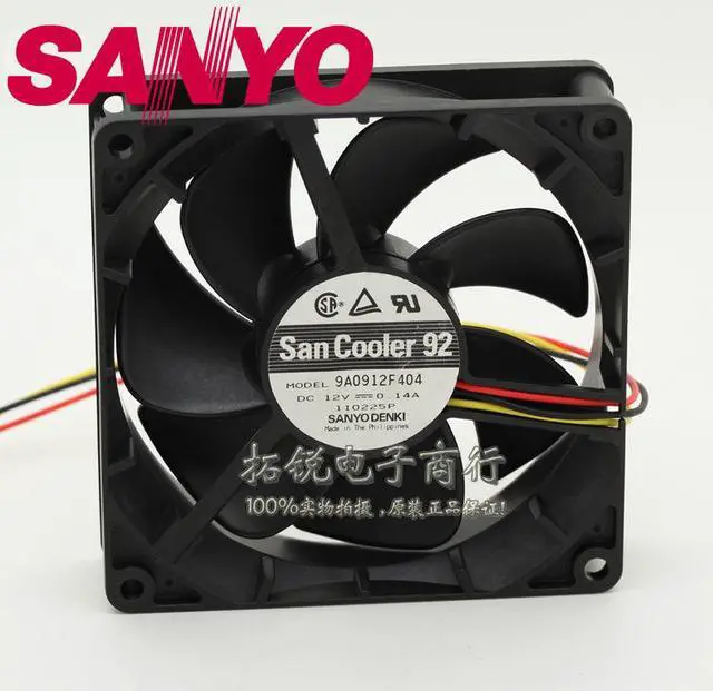Fan parameters :Model : 9A0912F404Dimensions : 92 * 92 * 25mmVoltage : DC12VOperating voltage : 6V-13.8VCurrent : 0.14APower : 1.68WSpeed:2650rpmAir volume :43.8CFM /1.24 m3 / minPressure : 32.2PaNoise : 30dbWeight : 120gLife : 40000hStorage temperature :-30oC To + 70oCOperating temperature:-10 ° C to + 60 ° C