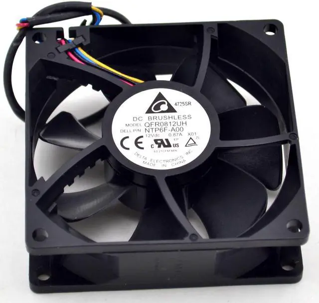 Model : QFR0812UH 9CWCH-A00Dimensions : 80 * 80 * 25mmVoltage : 12VCurrent : 0.87AActual current : 0.55ASpeed : 5600RPM (max)Wind : 70.24CFM (MAX)Noise : 50.3DBA