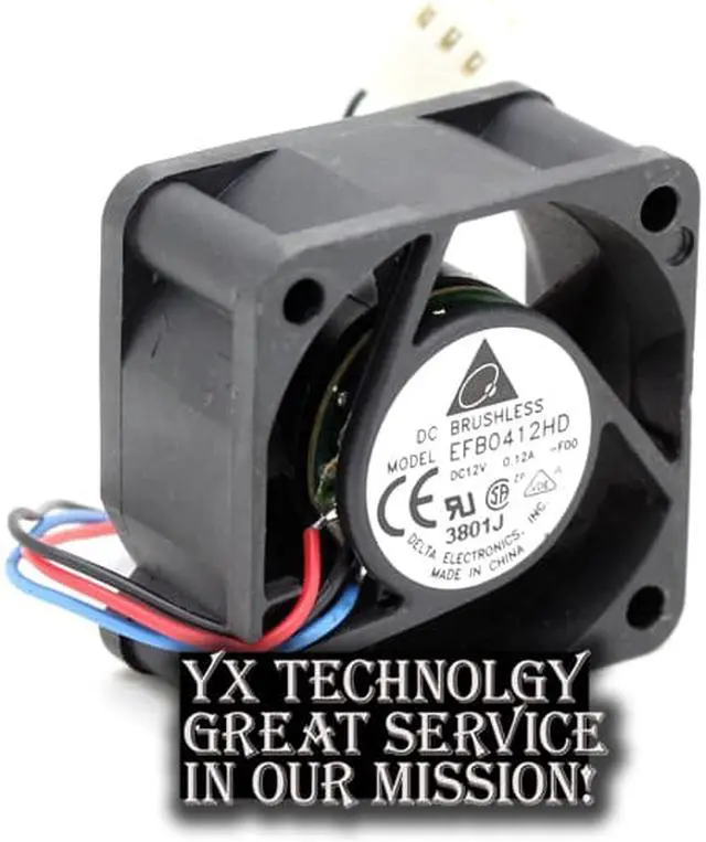 :DeltaModel : EFB0412HDDimensions : 40 * 40 * 20mmVoltage : 12VNominal current : 0.12AActual current : 0.08APower : 0.96WSpeed : 7600RPMWind : 8.54CFMPressure : 0.303in H2ONoise : 28.5DBABearing : Dual ball bearingWeight : 33G