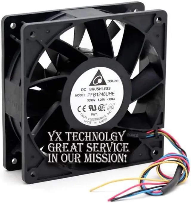:DeltaModel : PFB1248UHEDimensions : 120 * 120 * 38mmVoltage : 48VCurrent : 1.20AActual current : 0.88APower : 42.24WSpeed : 5300RPMWind : 243.7CFMNoise : 66DBA