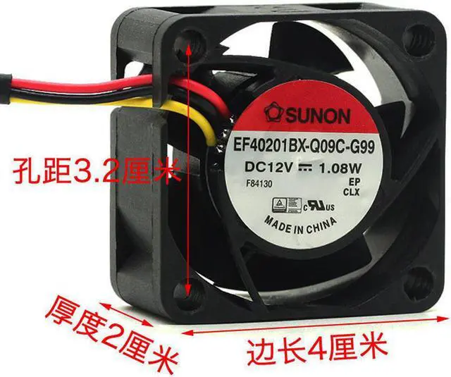 Model: EF40201BX-Q09C-G99Size: 40*40*20mmVoltage: 12VCurrent: 1.08WInterface: motherboard 3P interfaceLine length: 18 cm