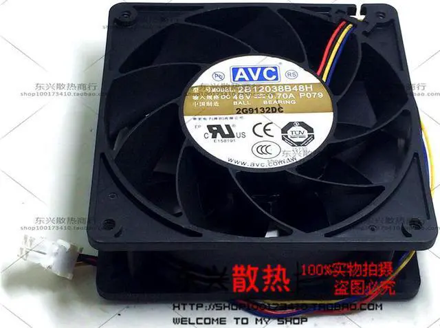 Model : 2B12038B48HSpecifications :120X120X38mmVoltage:DC48V fourLine PWMCurrent:0.70ABearing : Dual BallBox system : Plastic11LeafWiring: red+Black line- YellowLine speed control signal line blue line